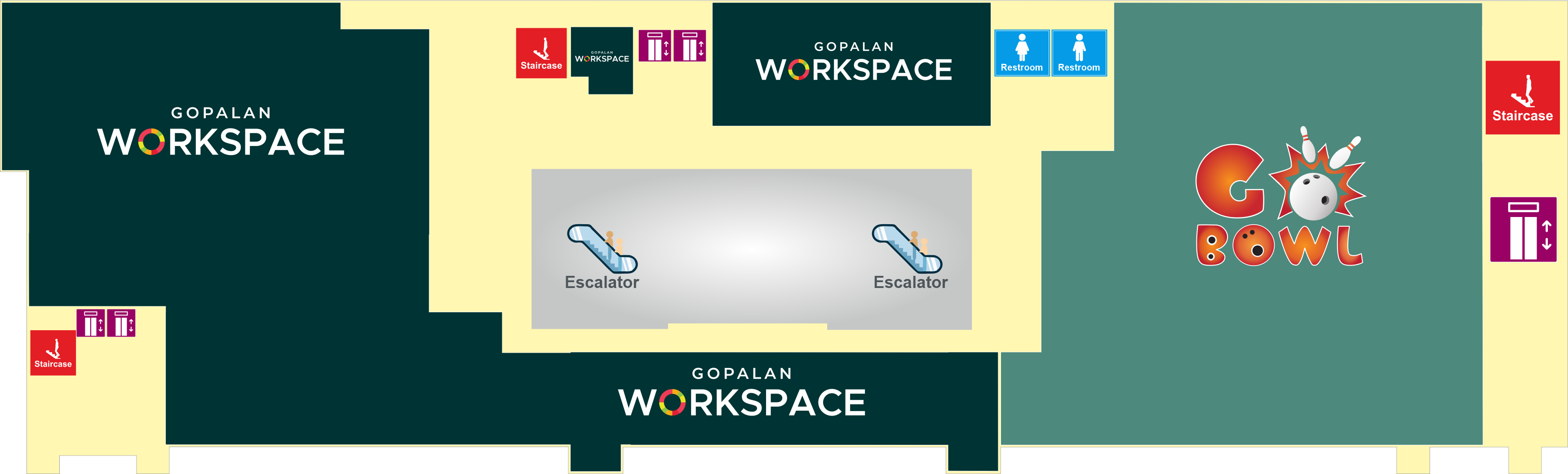 Gopalan Innovation integrates a modern workspace, making it an ideal hub for both professionals and shoppers. The entertainment section includes Gopalan Cinemas, with three screens and a total seating capacity of 849, and a 12-lane Go-Bowling arena.