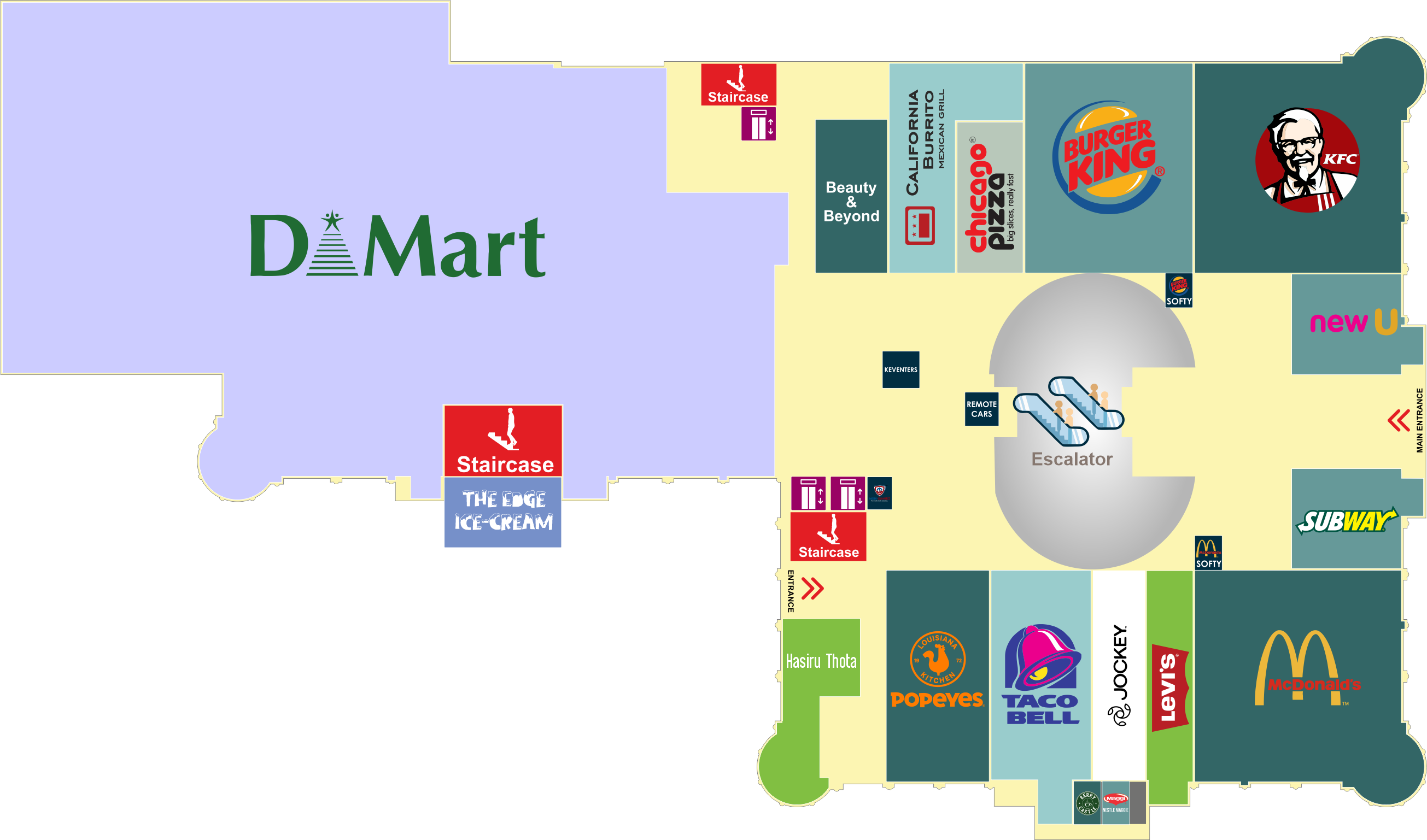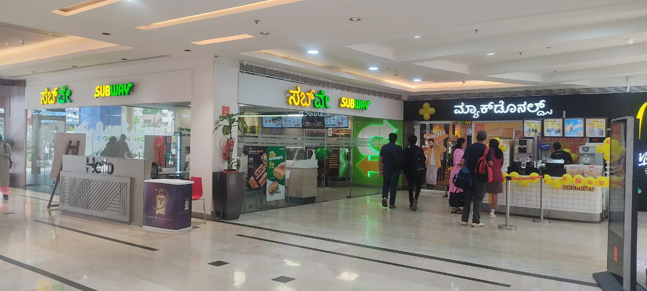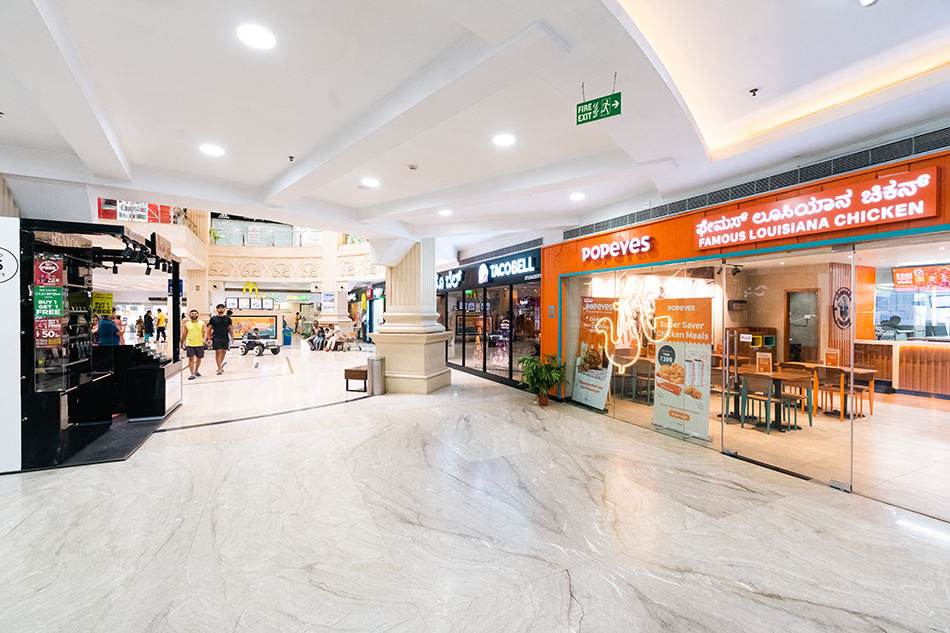 The mall is conveniently located 800 meters from the Rajarajeshwari Nagar Metro Station and provides parking space for 210 vehicles with FASTag feasibility.