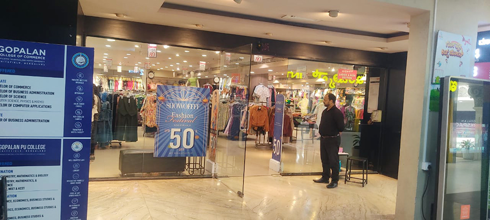 With its striking white façade and golden domes, Gopalan Arcade Mall is a standout destination on the Mysore Road.